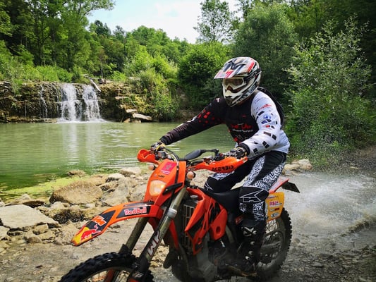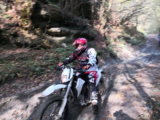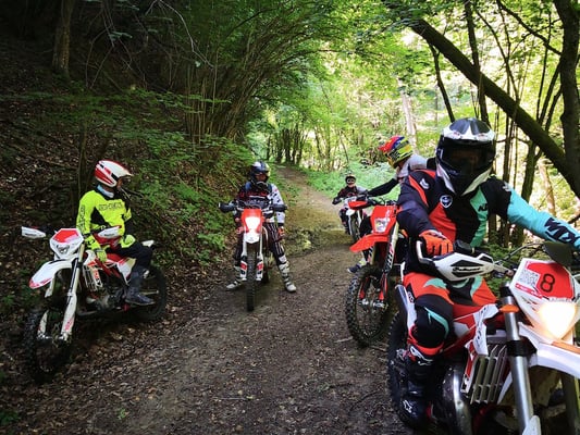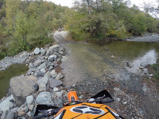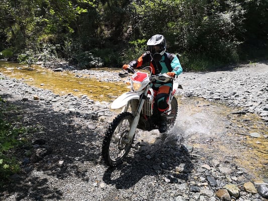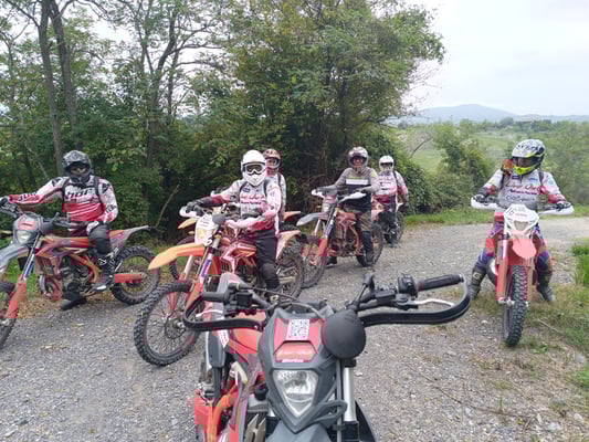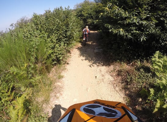 Incontro presso un B&B in zona Lerma (AL). Ci si prepara per l'uscita in moto. Partenza da subito in fuoristrada. Percorso abbastanza vario, con tratti di bosco, alcuni tratti con pietraie di media difficoltà, ancora sentieri di bosco e poi sterrati facili ma molto scenografici. Pranzo lungo il percorso e per concludere un tratto semplice, ma spettacolare, la Via Cirimilla.