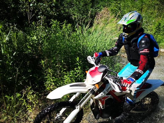 Abbigliamento tecnico da enduro ((casco, guanti, stivali, calzettoni, ginocchiere, pettorina, pantaloni, maglia, mascherina,K-Way)