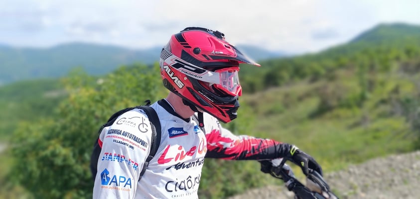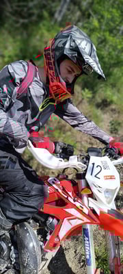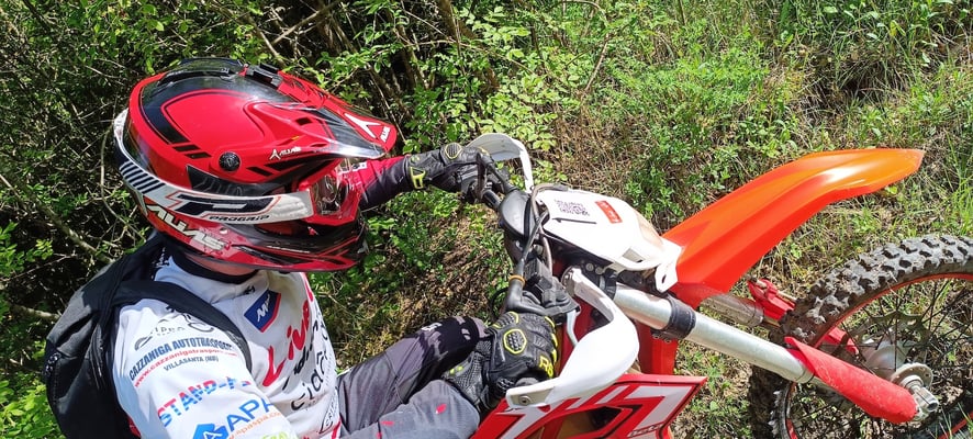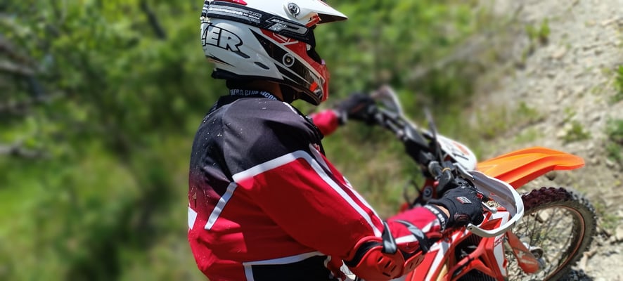 Abbigliamento tecnico da enduro ((casco, guanti, stivali, calzettoni, ginocchiere, pettorina, pantaloni, maglia, mascherina,K-Way)