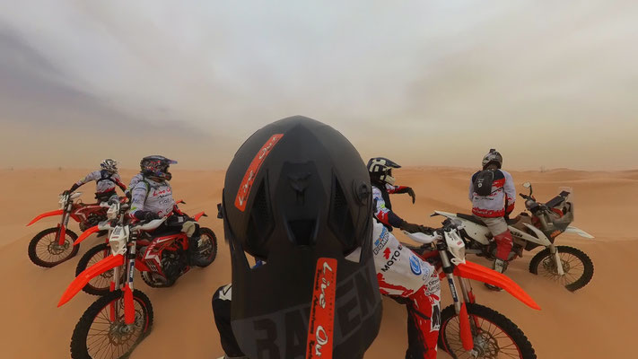 con il bagaglio quando viaggio in moto tra le dune.