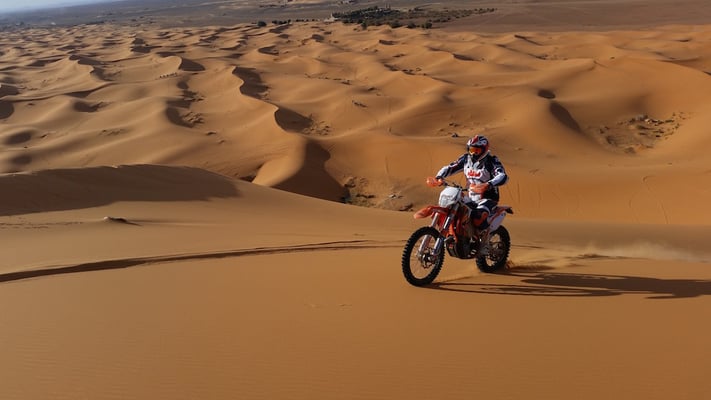 L'Erg Chegaga o anche Erg Chigaga è uno dei due grandi deserti di dune del Marocco, si trova a sud del paese nella regione del Sahara marocchino. E' un mare di sabbia vastissimo, meno conosciuto dell’Erg Chebbi, ma più autentico e meno frequentato dai turisti dove le dune possono raggiungere anche i 300 metri di altezza. Arrivati a Marrakech ci sarà un trasferimento a sud fino a Zagora, luogo di partenza del nostro tour. Ci attendono diversi giorni per assaporare uno dei luoghi più spettacolari e autentici del deserto marocchino e di puro divertimento di guida tra le dune. Guida in moto, veicolo assistenza e logistica LIVE OUT.